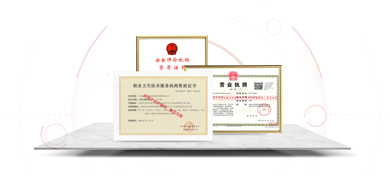 職業(yè)衛(wèi)生檢測、評價(jià)資質(zhì)證書證書編號:(豫)衛(wèi)職技字(2021)第6號業(yè)務(wù)范圍:采礦業(yè)、化工、石化及醫(yī)藥等
