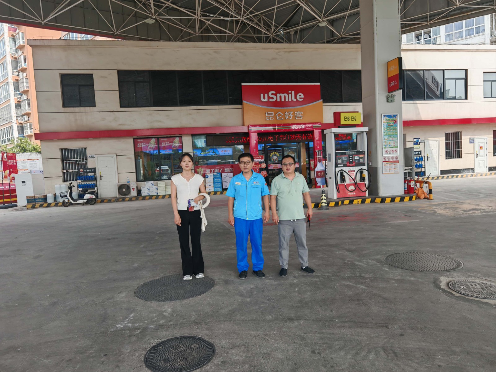 項(xiàng)目簡介 | 中國石油天然氣股份有限公司河南商丘第六十六加油站位于商丘市文化路與中州路交叉口西北角。該加油站自上次取得危險(xiǎn)化學(xué)品經(jīng)營許可證三年以來,未發(fā)生過安全生產(chǎn)事故;2025年6月在罩棚東南側(cè)新建一處汽車充電區(qū),包含7個(gè)汽車充電樁、一臺(tái)充電樁主機(jī)柜和一座箱式變壓器;2025年6月,加油作業(yè)區(qū)內(nèi)汽油加油機(jī)旁各新裝一臺(tái)可燃?xì)怏w探測報(bào)警器;2025年7月,站內(nèi)原洗車區(qū)和衛(wèi)生間拆除,在原地新建一座汽車餐廳(無明火廚具);加油站站內(nèi)其他設(shè)備設(shè)施及周邊環(huán)境未發(fā)生變化。 該加油站占地面積約2047.56m2,現(xiàn)有員工7人,其中安全生產(chǎn)管理人員1人,無特種作業(yè)人員;《危險(xiǎn)化學(xué)品經(jīng)營許可證》(證書編號:豫N危化經(jīng)字[2024]053),有效期限為2022年11月21日至2025年11月20日,許可范圍:乙醇汽油、柴油。 該加油站有地埋式儲(chǔ)油罐4座(雙層罐),其中汽油罐3座(1×20m3+2×30m3)、柴油罐1座(1×20m3);設(shè)有加油機(jī)4臺(tái)。根據(jù)GB50156-2021《汽車加油加氣加氫站技術(shù)標(biāo)準(zhǔn)》中加油站分級的規(guī)定,折合計(jì)算油罐總?cè)莘e為90m3(柴油折半計(jì)入),屬于三級加油站。 | |||